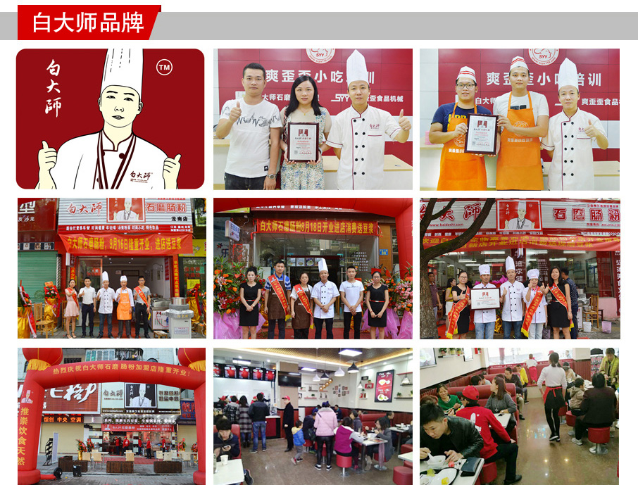 旗下品牌:白大師餐飲連鎖品牌,創(chuàng)立于2012年,創(chuàng)始人白振先生以發(fā)揚東莞非物質(zhì)文化遺產(chǎn)為己任、以產(chǎn)業(yè)報國為目標(biāo)、為中國連鎖美食走向世界而奮斗,發(fā)展過程中白大師石磨腸粉品牌在不斷創(chuàng)新和提升,現(xiàn)全國各地分布多家白大師石磨腸粉加盟店。白大師本著對美食的追求和熱愛,以推崇飲食天然,追求健康養(yǎng)生為品牌的經(jīng)營理念,讓所經(jīng)營的產(chǎn)品更趨向個性化、多元化、品牌化、營養(yǎng)化,成功打造一個全天候經(jīng)營的品牌,勵志成為餐飲行業(yè)的領(lǐng)軍者!公司經(jīng)營項目有原生態(tài)石磨腸粉系列、養(yǎng)生五谷豆?jié){、原味湯粉、特色面食系列、營養(yǎng)靚粥、蒸飯系列、冷飲小吃等。