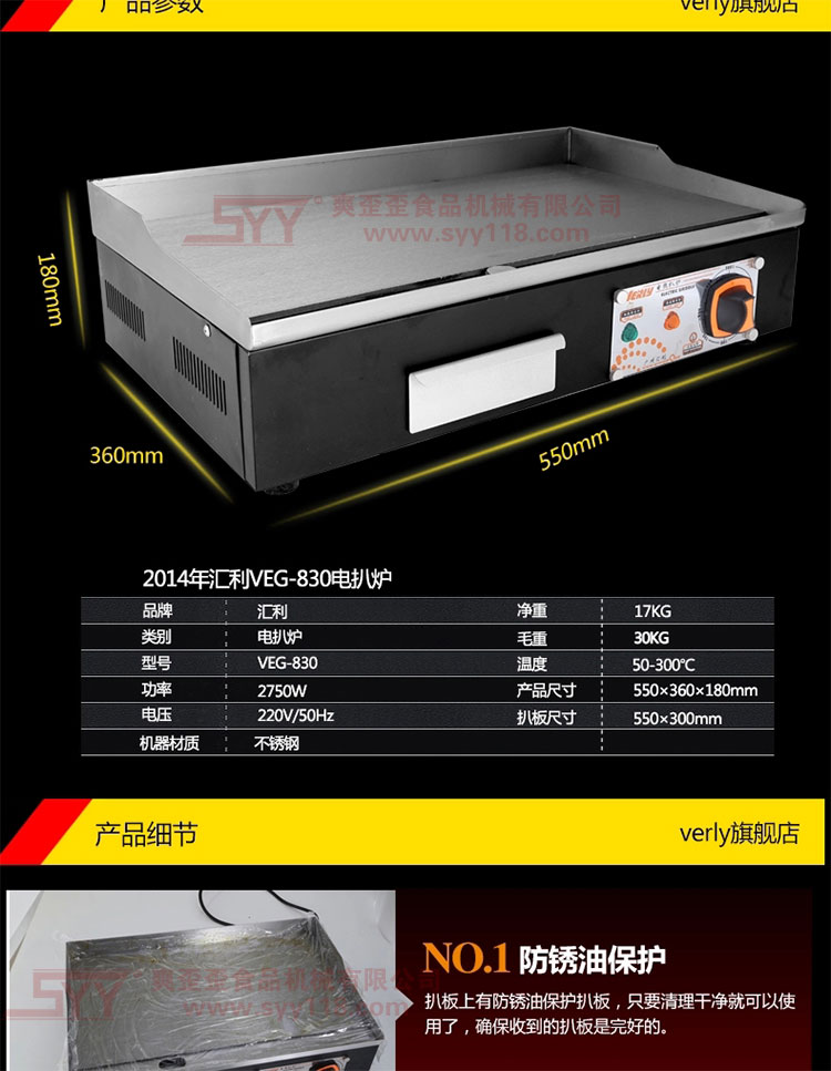 匯利VEG-830電熱扒爐商用電扒爐扒爐鐵板燒銅鑼燒