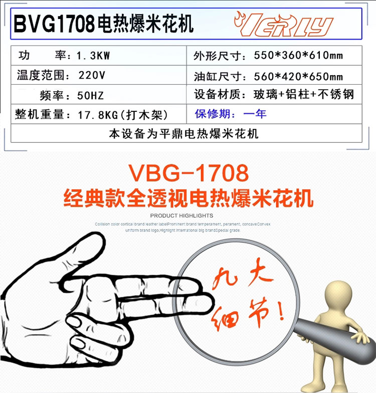 匯利VBG-1708 電熱爆米花機器商用爆谷機原料爆玉