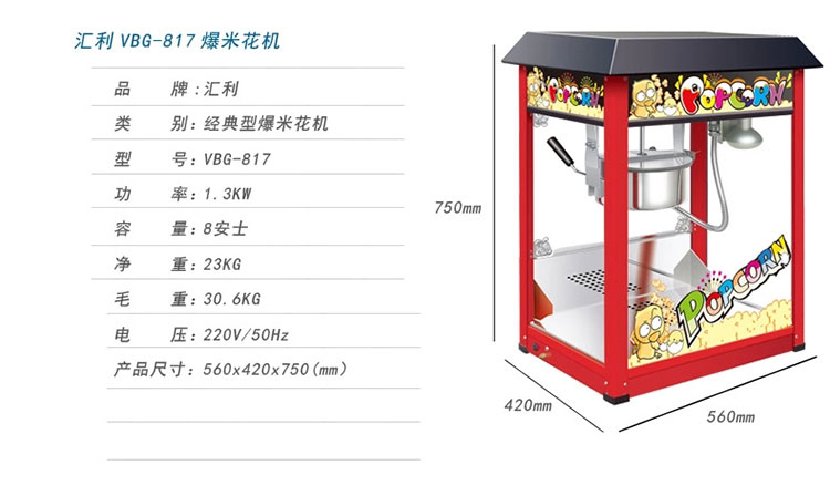 匯利豪華帶頂商用爆米花機 爆谷機VBG-817 商用