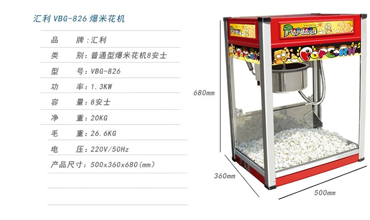 8安士爆谷機(jī)(普通型)VBG-826匯利豪華型爆米花機(jī)