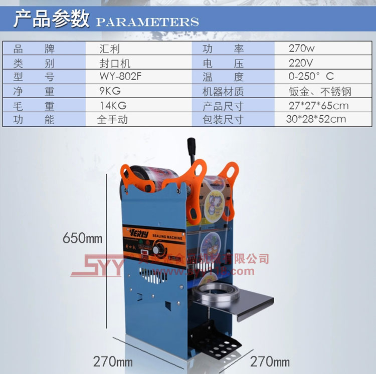 匯利WY-802F高杯珍珠奶茶手壓封口機(jī)奶茶店專用豆