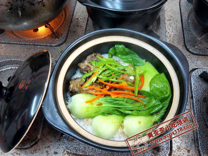煲仔飯是廣東的傳統(tǒng)美食。 廣式煲仔飯的風(fēng)味多達(dá)20余種,如臘味、冬菇滑雞、豆豉排骨、豬肝、燒鴨、白切雞等。其實(shí)煲仔飯也稱瓦煲飯,瓦煲除了指一種盛器,還指一種烹飪方法,就是把淘好的米放入煲中,量好水量,加蓋,把米飯煲至七成熟時加入配料,再轉(zhuǎn)用慢火煲熟。用瓦做成的“煲”,在火候控制方面比較靈活,煲出來的飯也較為香口。