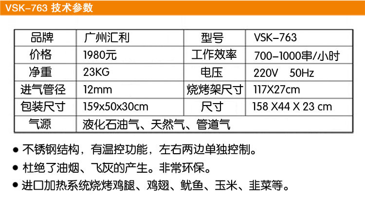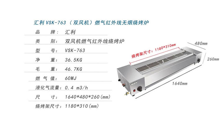匯利VSK-763帶風(fēng)機無煙燒烤爐 無煙燃氣燒烤爐 酒