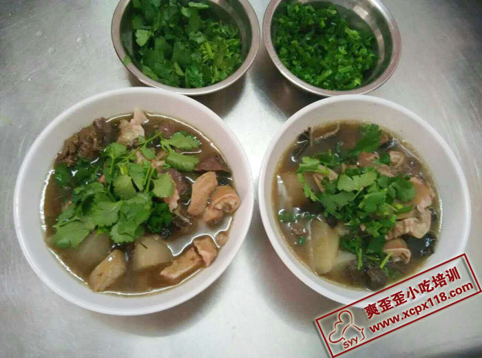 四:蘿卜牛雜底鍋高湯的熬制和調(diào)配。例:十斤水加多少鹽等,師傅講解詳細(xì)的調(diào)料比例。