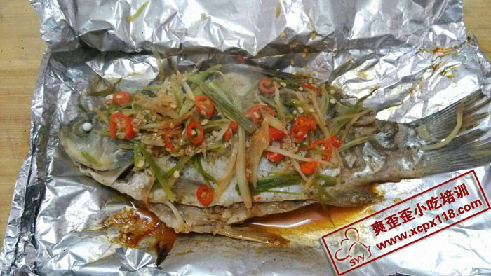 2、師傅示范錫紙烤魚(yú)的做法,學(xué)員動(dòng)手制作錫紙烤魚(yú)