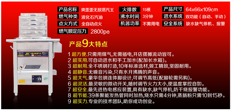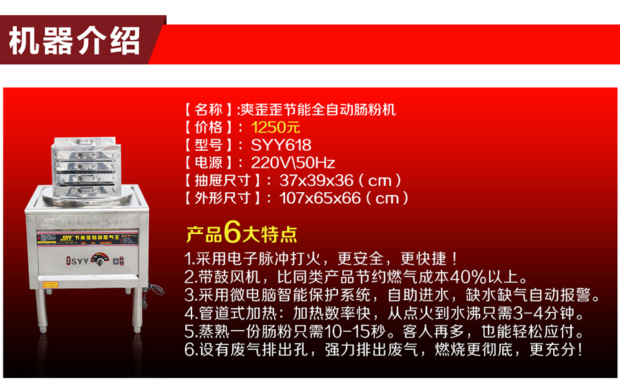 5、介紹爽歪歪節(jié)能全自動腸粉機使用和保養(yǎng),蒸腸粉時的注意事項, 用時2—3個小時。