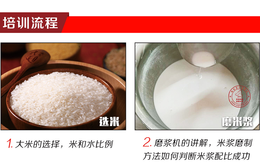 3、介紹磨米漿,米漿里所添加材料的比例和腸粉專用磨漿機使用, 用時1個小時。