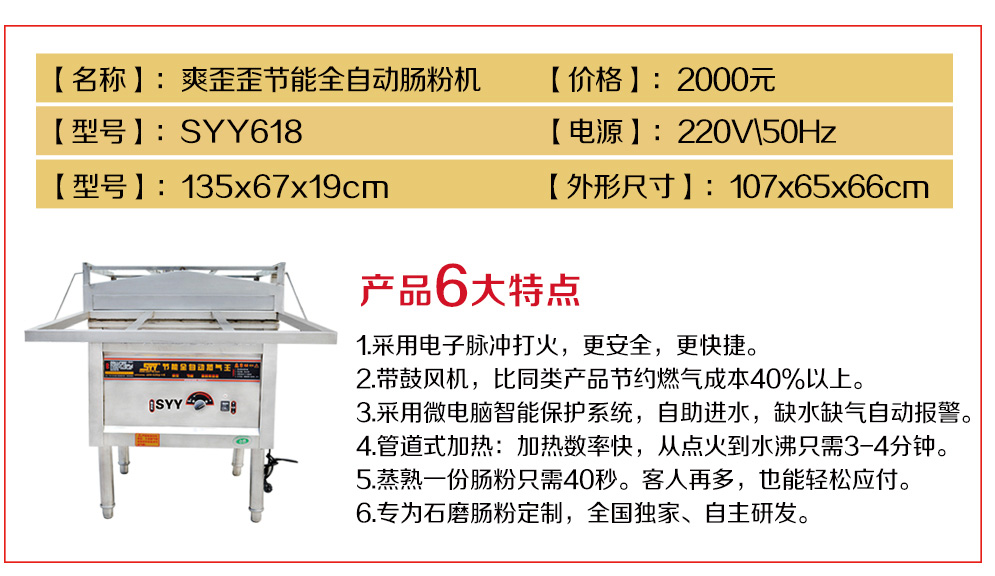 一份腸粉本成分析:米漿成本:0.2元左右(1斤米大概2元錢左右,一斤米可以10份腸粉,也就是0.2元的成本)雞蛋成本:0.6~0.8元左右,醬汁成本:0.3元左右,煤氣成本:0.1~0.2元左右,總共成本:1.3~1.5元左右(一般石磨腸粉售6-8元/份,利潤(rùn)在50%以上)綜上分析,我們可以看出腸粉的利潤(rùn)相對(duì)還是比較大的。同時(shí)要強(qiáng)調(diào),石磨腸粉的利潤(rùn)比抽屜式腸粉要高。
