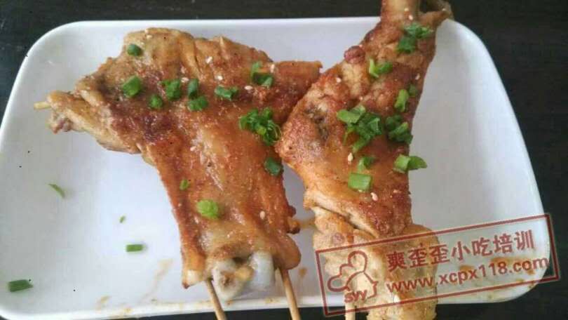 1、師傅示范腌制好的雞腿/雞翅/肉類的串制方法,然后一起動手串制雞腿/雞翅/肉類/花樣肉串